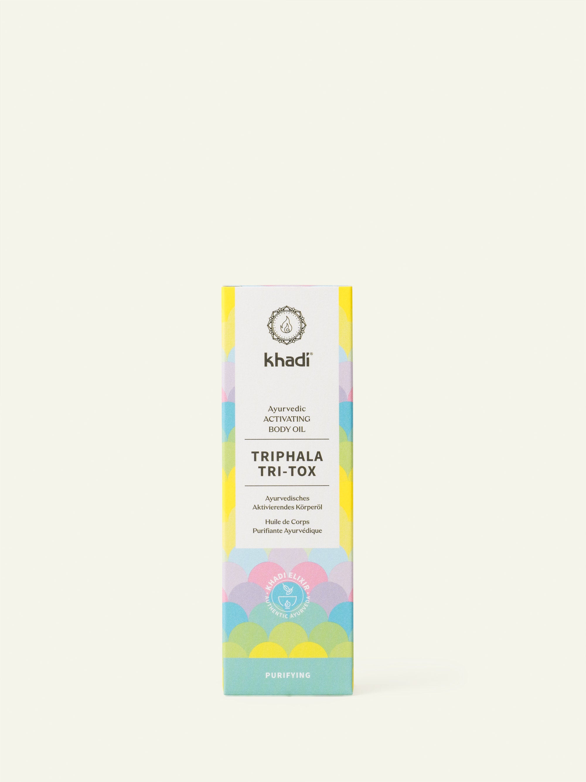 The secret of Triphala Tri-Tox lies in the khadi Triphala Elixir—a concentrated extract of handpicked Ayurvedic herbs, simmered to enhance its natural healing power. Up to 20% of this body oil is made from the elixir, compared to just 2-5% in regular oils.