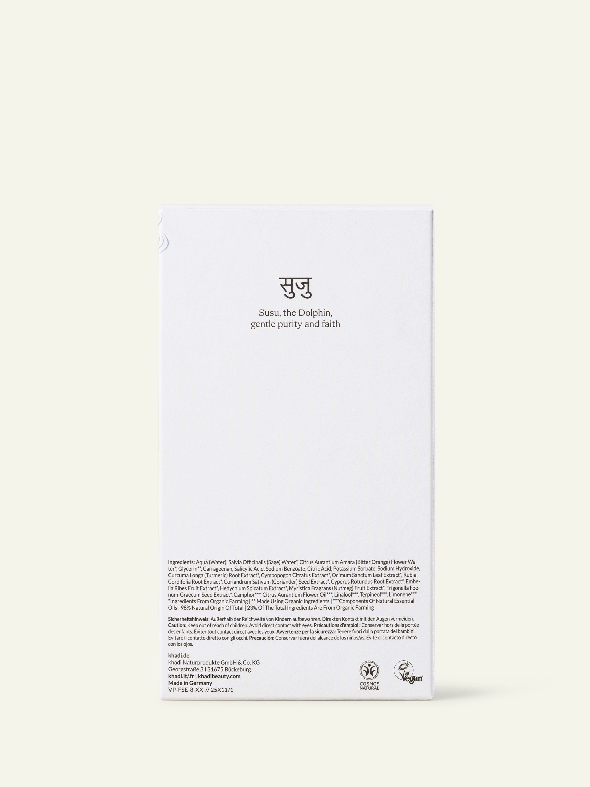 The Susu Pure Set is your daily ritual for lightness, purity, and inner balance. Inspired by the dolphin – the spirit animal of clarity, intuition, and fluid movement – it combines deep-cleansing Ayurvedic care with modern skin science.